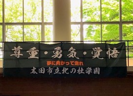 太田市立北の杜学園に横断幕2枚を寄付致しました。