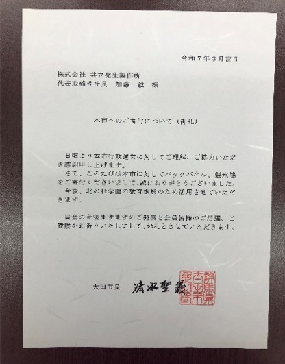 当社のSDGsへの取り組みに対して、感謝状が贈呈されました。